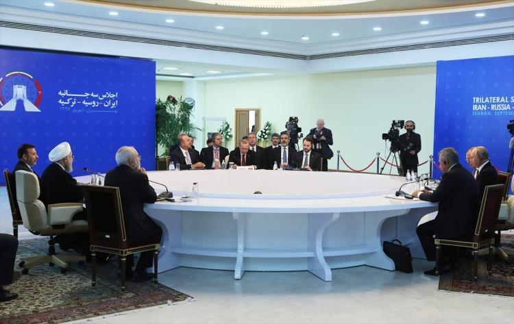 Türkiye Cumhurbaşkanı Recep Tayyip Erdoğan, İran Cumhurbaşkanı Hasan Ruhani ve Rusya Devlet Başkanı Vladimir Putin'in "Suriye" meselesini ele aldıkları Türkiye-Rusya-İran Üçlü Zirvesi İran Liderler Konferans Salonu'nda gerçekleştirildi. Erdoğan ve Ruhani zirve öncesi bir araya geldi.