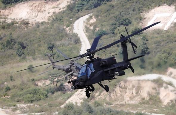 Apaçi helikopterleri de tatbikata katılan askeri envanterler arasında yerini aldı.