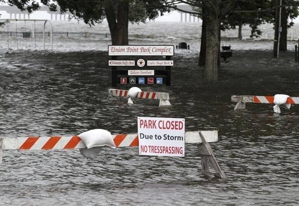 Şehrin bir kısmı okyanustan gelen şiddetli dalgalar nedeniyle sular altında kalırken, şiddetli rüzgar ve sağanak da etkisini gösteriyor.