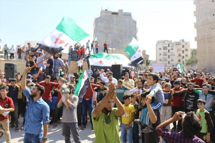 Suriye'nin kuzeybatısında büyük bölümü Özgür Suriye Ordusu'nun (ÖSO) kontrolündeki İdlib ilinde Beşşar Esed rejimi ve destekçilerinin olası operasyonuna karşı gösteriler düzenlendi.