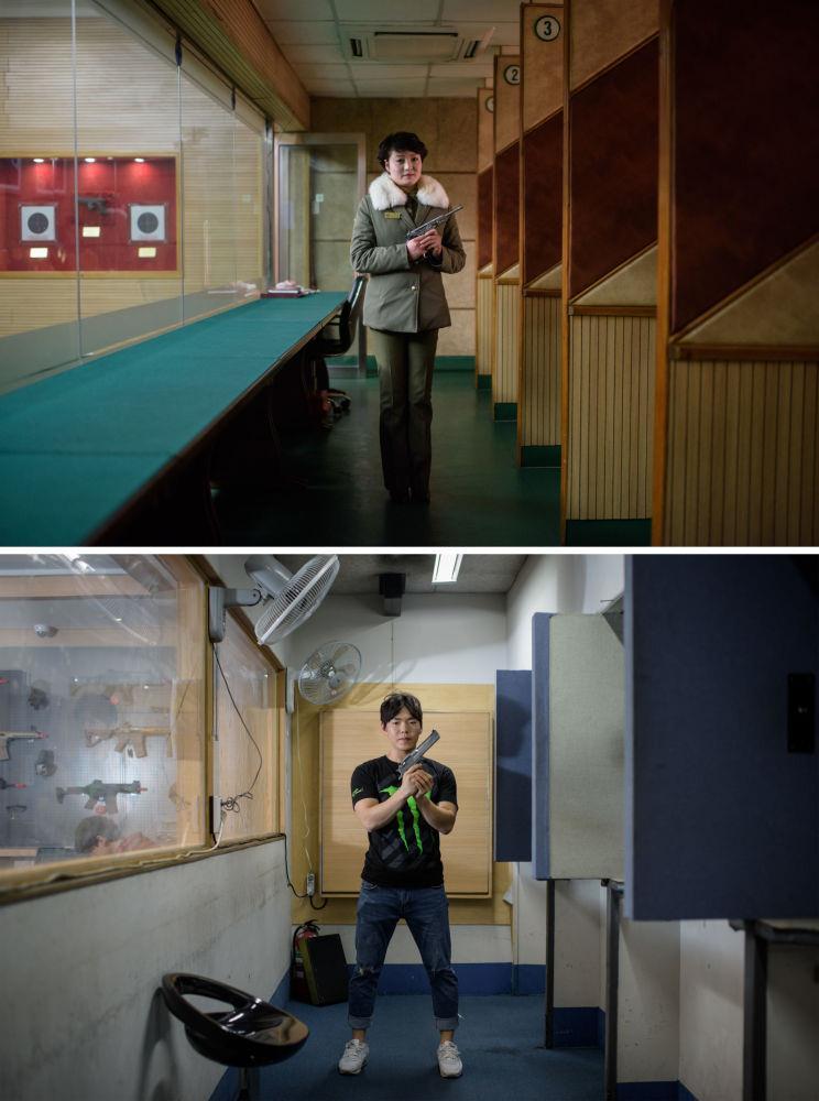 Kuzey Koreli atış eğitmeni Kim Su Ryon (yukarıda) ve Güney Koreli atış eğitmeni Lee Chi-yoon (aşağıda)