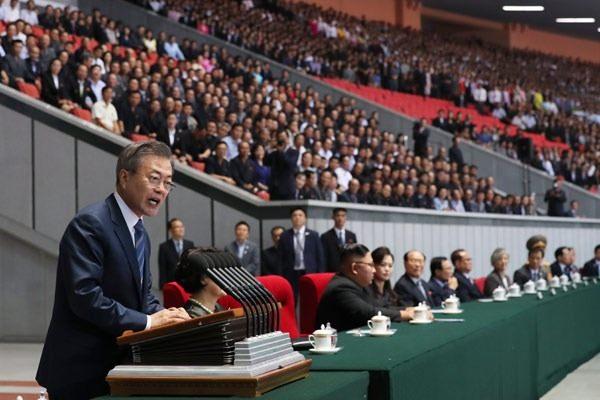 Güney Kore Devlet Başkanı Moon kürsüye çıktı.
