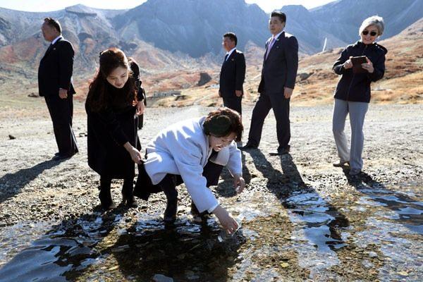 Güney Kore First Lady'si Kim Jung-sook da aynı şeyi yaptı, yanında Kuzey Kore'nin First Lady'si Ri Sol Ju vardı.