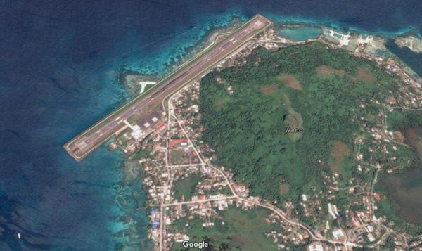 Uçağın hemen yanına düştüğü Chuuk Havalimanı'nın kuşbakışı görünümü.