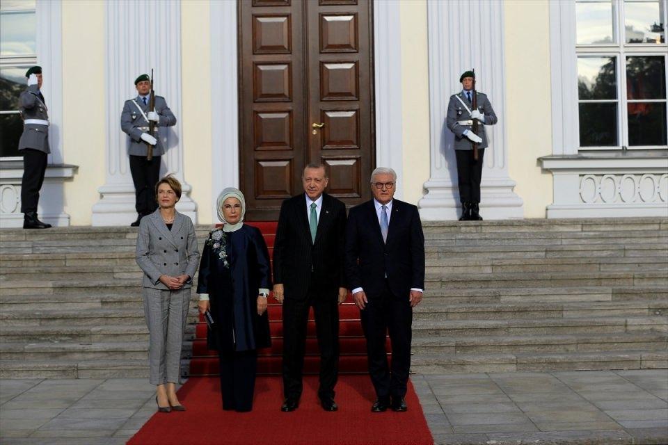 Almanya Cumhurbaşkanı Frank-Walter Steinmeier, Erdoğan'ı Bellevue Sarayı'nda askeri törenle karşıladı.