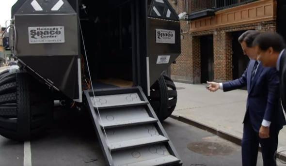 Dev tekerlekleri olan araca girişler arkadan yapılıyor ve merdivenle çıkılabiliyor.