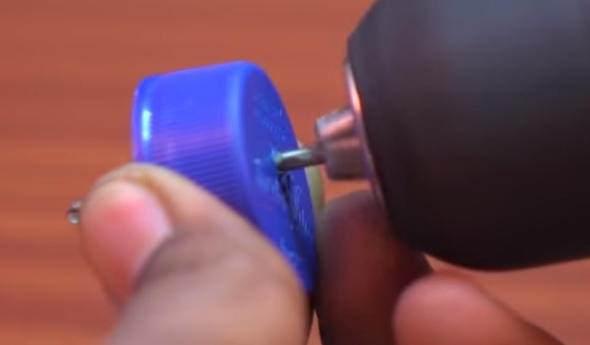 Ardından matkapla kapağın tam ortasından delik açıyoruz.
