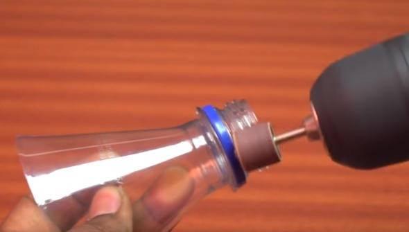 Ardından pet şişenin kapağının takıldığı kısmı zımparayla düzleştiriyoruz.