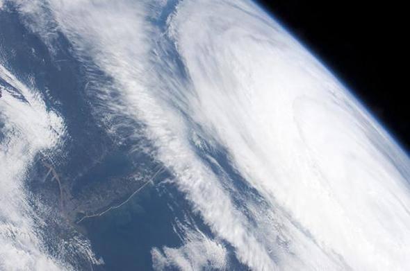ABD’de meydana gelen Katya kasırgası astronotlar tarafından bu resim çekildiğinde Kategori 1’e gerilemişti. Yine de, etkili olan bulut sirkülasyonunun merkezden ABD’nin kuzey doğu kıyılarına ilerlediği görülüyor.