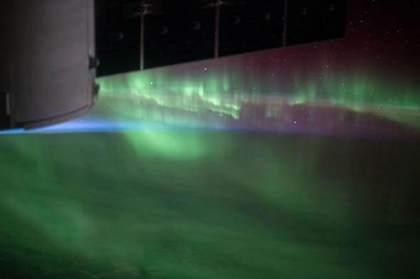 Uzay İstasyonu mürettebatı, Avustralya'nın güneybatısındaki muhteşem ışık şölenine de tanık olmuş. Aurora Australis olarak adlandırılan ve buzullardan yansıyan güneş ışınlarının yarattığı görüntü 11 Ağustos'ta fotoğraflanmış.