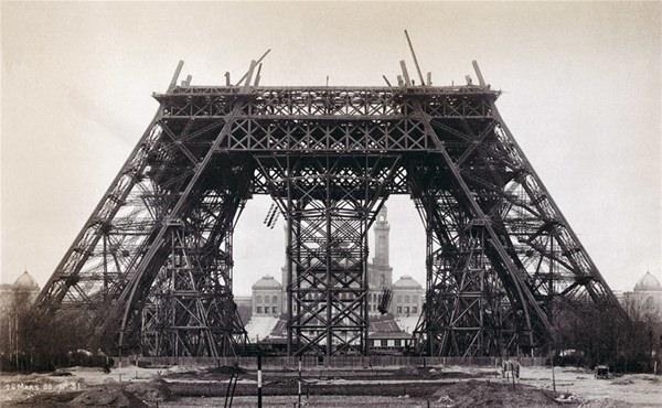 Eyfel Kulesi'nin çelik kirişleri zirveye doğru uzanırken, 1888.