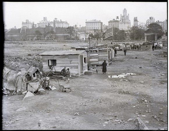 Büyük Buhran sonrasında birçok insana yaşam alanı olan Hooverville, Central Park, New York.