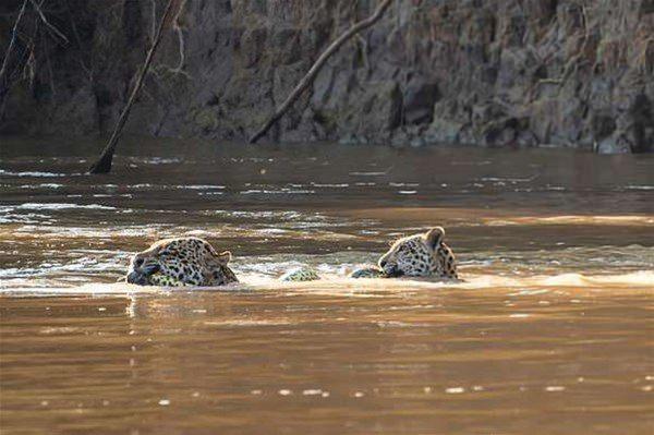 Brezilya'nın Pantanal bölgesinde çekilen karelerde jaguarlar görenleri hayret ettirdi.