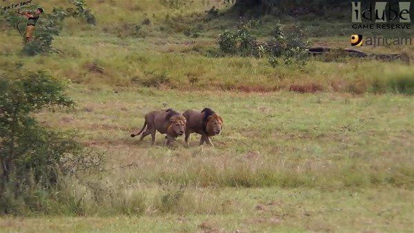 Bir çift aslan takip edilen anne ve yavrusu bir anda avcılarla baş başa kalıyor.