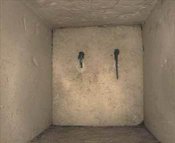 Rudolf Gantenbrink tarafından Büyük Piramitte keşfedilen bakır kulplu kapı. Resim UPUAUT 2 adlı bir araştırma robotu tarafından çekilmiştir.. Hangi amaca hizmet ettiği bilinmeyen gizemli kapı ,kraliçe odasından başlayan güney kanallarında yer almaktadır. Bu kapının arkasında başka bir kapı daha bulunmuştur. Yapılan bazı araştrmalar sonucunda içinde ne olduğunu bilmediğimiz bir oda veya odalar bu ikinci kapının arkasında bulunmaktadır.. Aynı kapıdan kral odasından başlayan kuzey kanallarında da bulunmuştur. Burada sorulan en önemli soru şu : Görünüşte hiçbir amaca hizmet etmeyen bu kapılar Neden buralara kondu ?