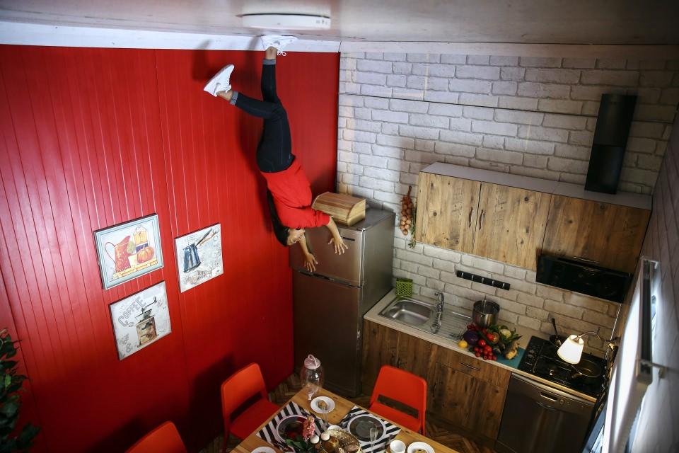 Tır dorsesinden yapılan 'tepetaklak ev'