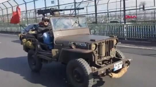 İstanbul trafiğinde uçaksavar taşıyan cipi görenler gözlerine inanamadı!