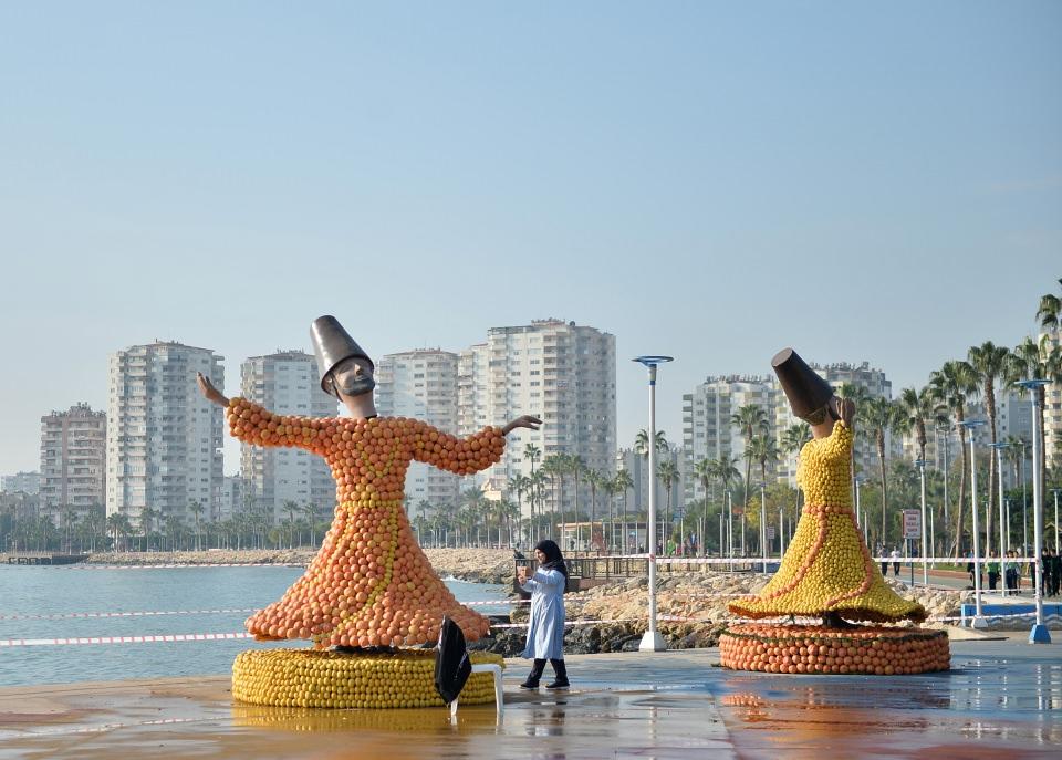 Kentin sahil şeridindeki Adnan Menderes Bulvarı'nda sergilenmeye başlayan figürler için saatlerce uğraşan kadınların, meyveleri bir araya getirerek devasa şekiller ortaya çıkarma süreci sahili gezen birçok kişinin ilgisini çekiyor.