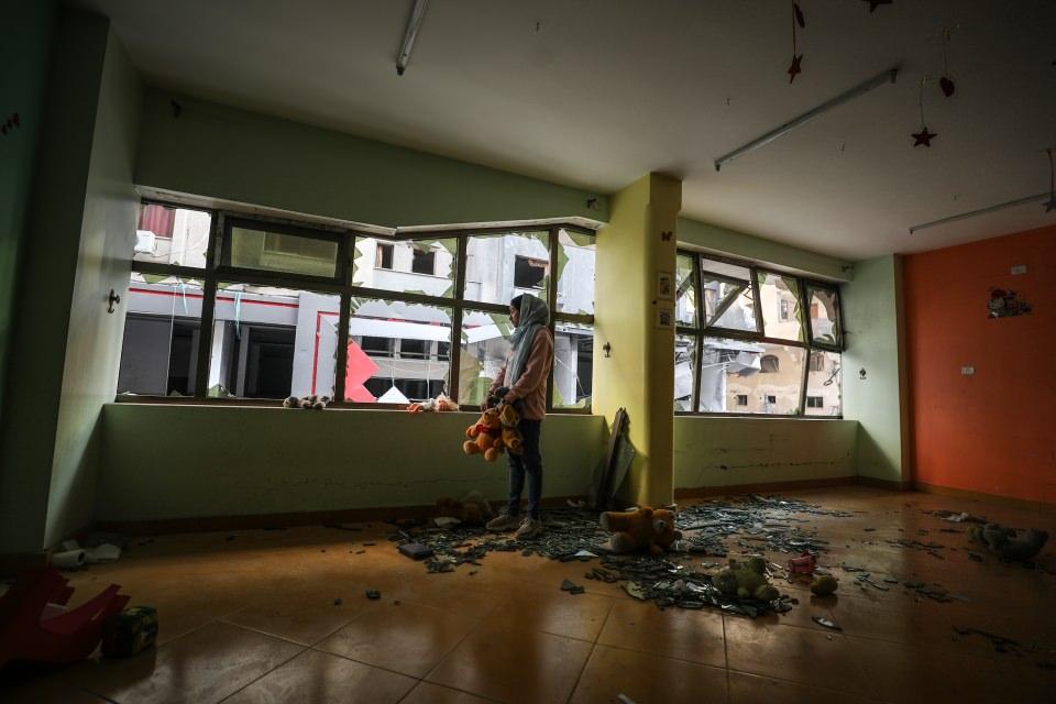 Şehed Anaokulu Müdiresi İbtisam el-Yazıcı, saldırı sonrası oluşan yıkım ve dağılan kitap, defter ve oyuncakları göstererek, "İsrail saldırısından saatler önce burada 200 çocuk eğitim görüyor, oyunlar oynuyordu." dedi.