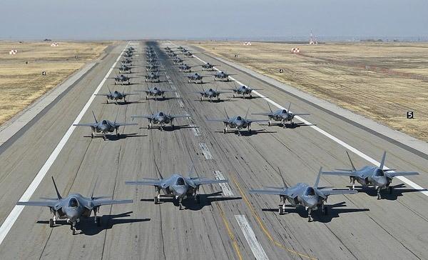 Füze ve bomba yüklü savaş uçakları yan yana dizildi.
