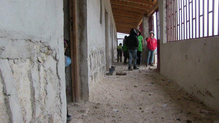 Beton zeminde üzerinde, sobasız sınıflarda ders yapıyorlar