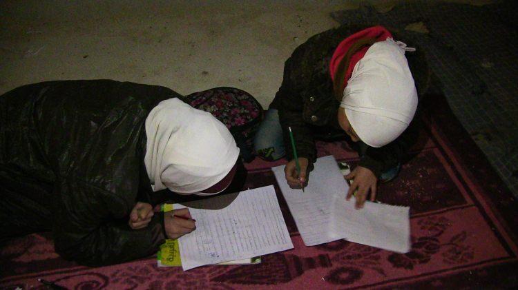 Beton zeminde üzerinde, sobasız sınıflarda ders yapıyorlar