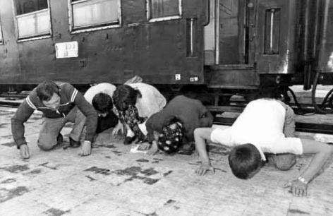 Zorunlu göçe tabi tutulan Bulgaristan Türkleri'nin trenden iniş anı, 1989.