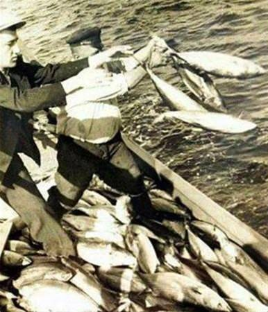 Tuttukları balıkların fazlasını denize geri atan balıkçılar. İstanbul, 1950ler.