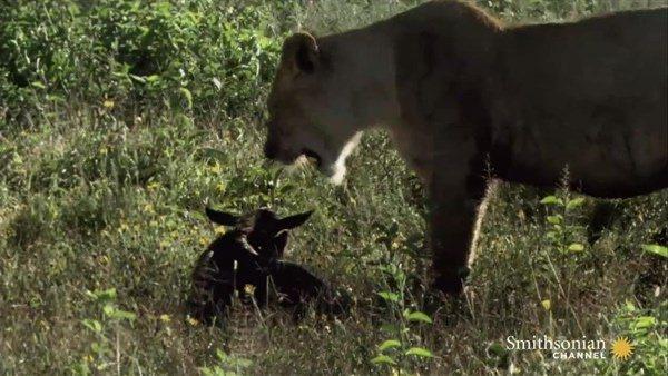 Aslan yavruya dokunmadı ve annesinin yanına dönmesine izin verdi.