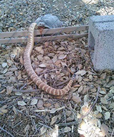 Çıngıraklı yılanı öldüren kaplumbağa.