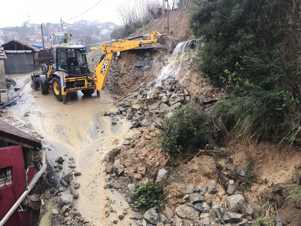 İstinat duvarı çöktü, yol trafiğe kapandı