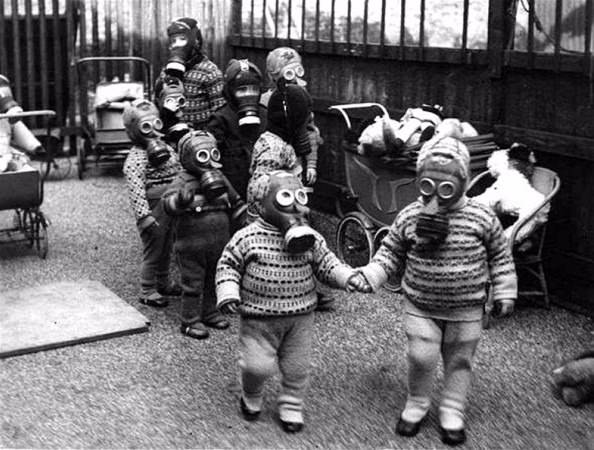 Londra bombalamaları aileler ve çocuklar için korkutucu bir ortam yarattı. Çocuklar gaz maskesi takmak zorunda kaldı.