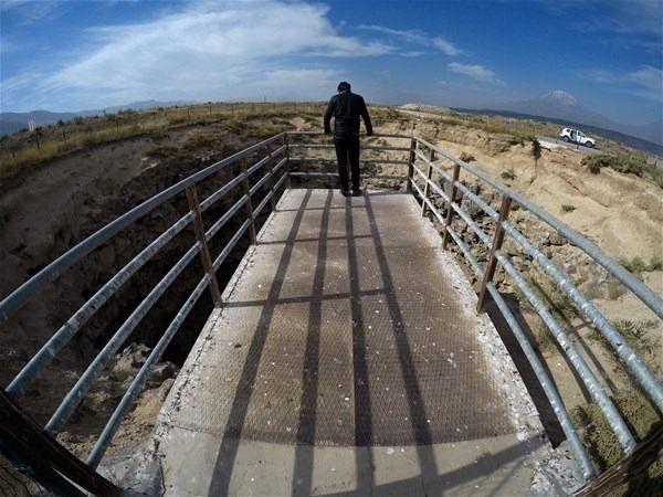 Dört mevsim yerli ve yabancı birçok turisti ağırlayan 60 metre derinliğindeki dev çukur, AA ekibince drone ile görüntülendi.