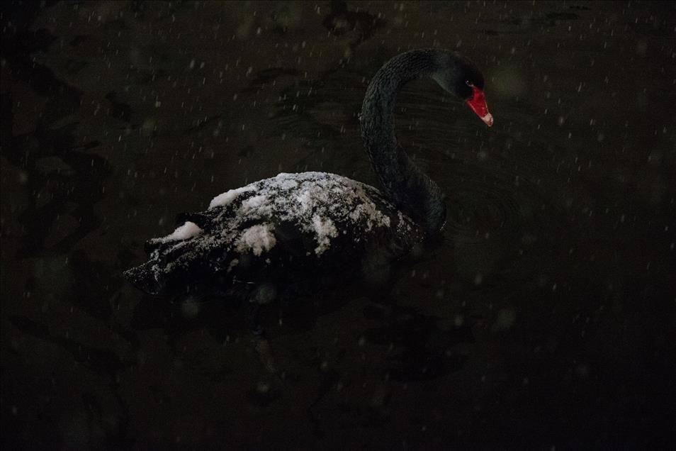 Ankara'da akşam saatlerinde kar yağışı etkili oldu. Kuğulu parktaki kuğular kar altında yüzdü. ( Mehmet Ali Özcan - Anadolu Ajansı )