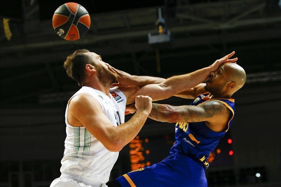 Basketbolda THY Avrupa Ligi'nin 14. haftasında Darüşşafaka Tekfen, Rusya temsilcisi Khimki ile deplasmanda karşılaştı. Bir pozisyonda Darüşşafaka Tekfen oyuncusu Oguz Savas (solda) rakibi ile mücadele etti. ( Sefa Karacan - Anadolu Ajansı )