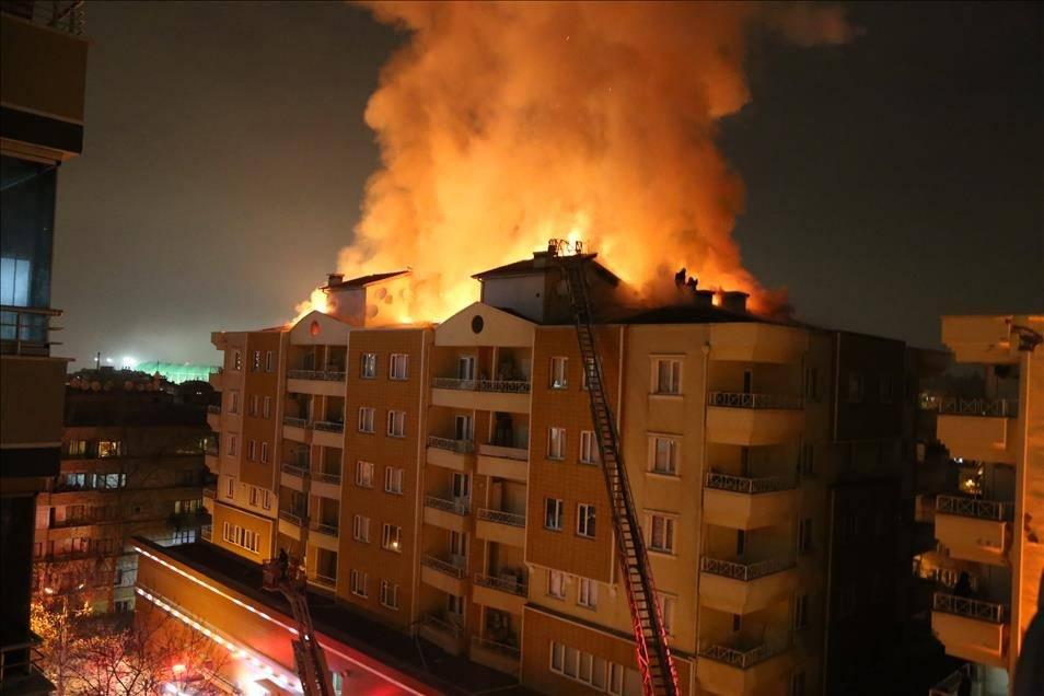 Bursa'nın Osmangazi ilçesinde, bir binanın çatı katında yangın çıktı. İtfaiye ekiplerinin yangına müdahalesi devam ediyor. ( Cem Şan - Anadolu Ajansı )