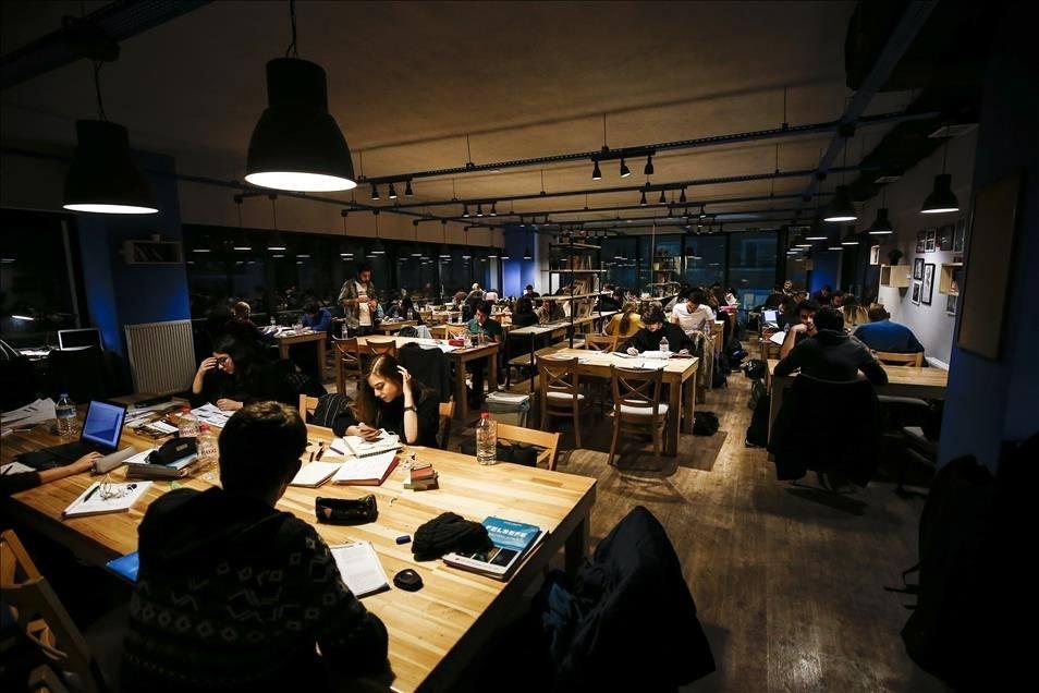 Ankara'da üniversite yıllarında gece ders çalışacak ortam bulamamaktan şikayet eden iki arkadaşın hayalini gerçeğe dönüştürmek için kurduğu ve zamanla sayıları artan kütüphane tarzındaki kafeteryalar, özellikle üniversite öğrencilerinin ilgisini çekiyor. ( Doğukan Keskinkılıç - Anadolu Ajansı )