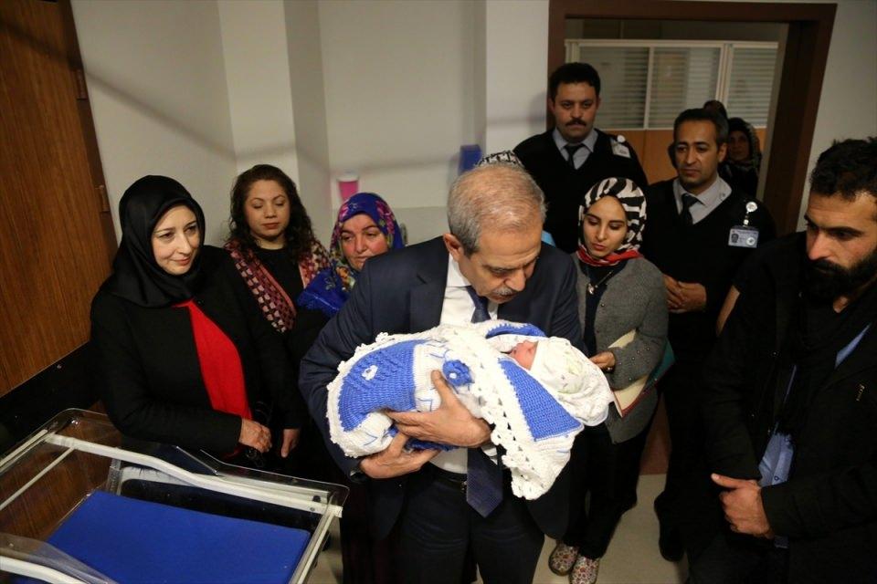 Haliliye Belediye Başkanı Fevzi Demirkol, bebeğin kulağına ezan okuyarak ismini verdi.