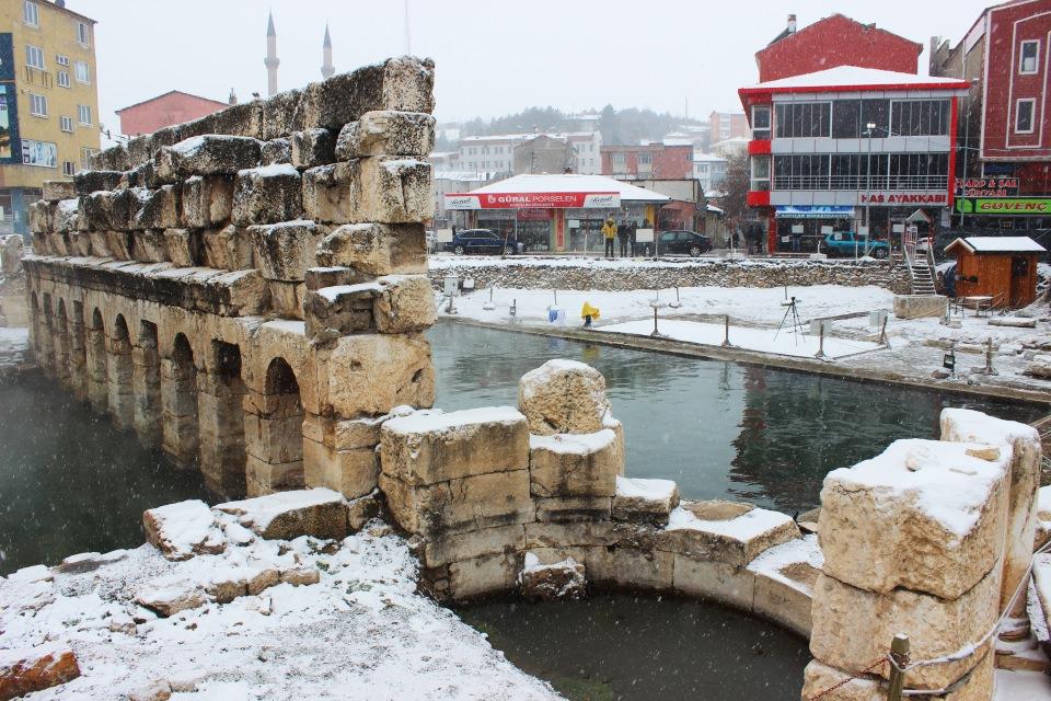 İki bin yıllık havuzda kar altında yüzme keyfi