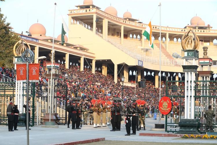 İki tarafın askerlerinin aynı anda askeri disiplin içinde yaptığı kapı kapatma töreninde ise sert bakışlı askerler ayaklarını yukarı kaldırarak birbirlerinin tersi istikamette yürüyor.