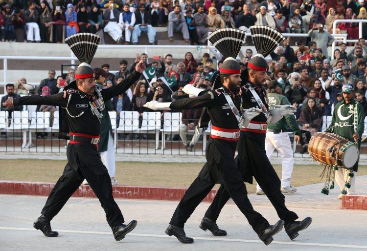 Sınırın tam sıfır noktasında karşı karşıya gelen iki ülke askerlerinin tokalaşmasıyla devam eden tören, yine senkronize olarak bayrakları indirme ile sona eriyor.