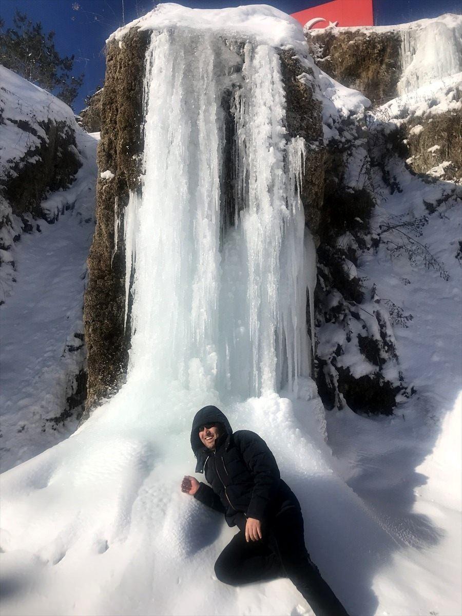 Sivas'ta etkili olan soğuk hava yaşamı olumsuz yönde etkiliyor. Soğuk havanın etkisiyle mesire alanında bulunan bir şelale buz tuttu.