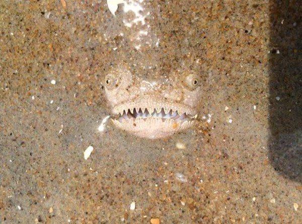 Stargazer balığı, denizin dibindeki kumların altına kendini tamamen gömerek gizler.