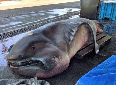 Japon balıkçılar tarafından dünyada çok nadir görülen dev ağızlı köpekbalığı yakalandı.