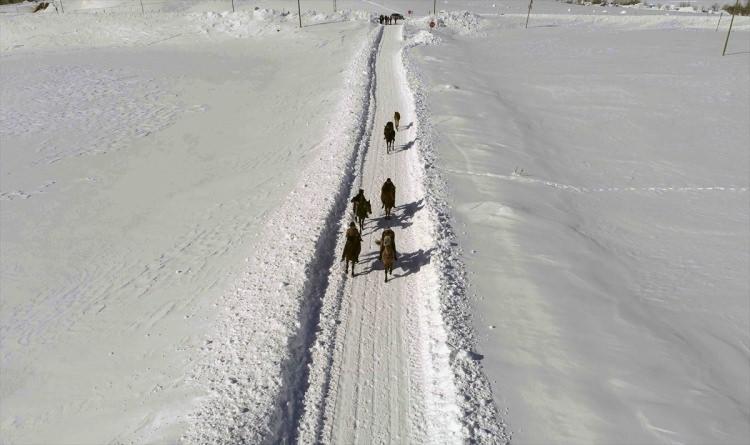 Atlar, kar üstünde yaz yarışlarına hazırlanıyor