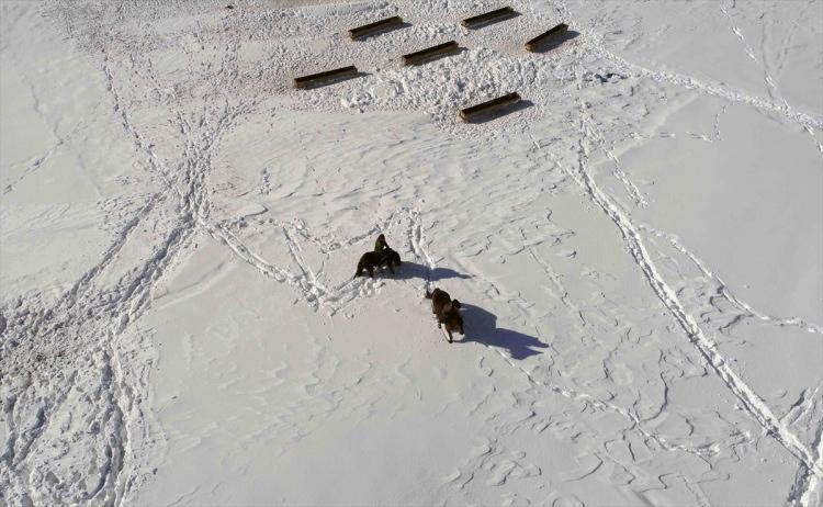 Atlar, kar üstünde yaz yarışlarına hazırlanıyor