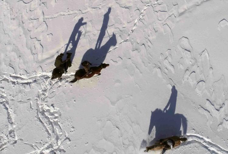 Atlar, kar üstünde yaz yarışlarına hazırlanıyor