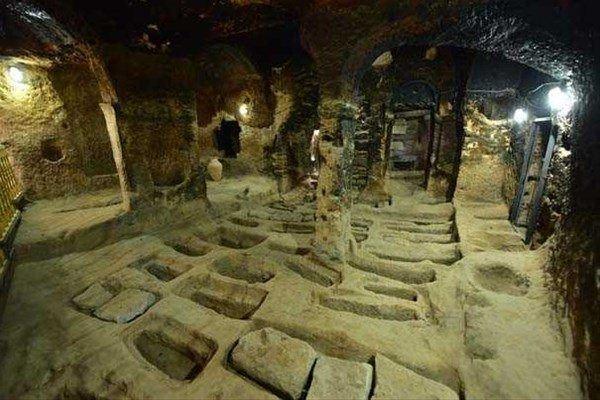 Kilisenin tabanında kaya oyma toplu mezar bulunuyor.
