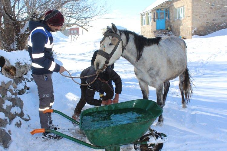 Ağrı'da kar yağışı nedeniyle köy ve mezralarda yaşanan elektrik kesintilerine ulaşmaya çalışan Aras Elektrik Dağıtım AŞ (EDAŞ) ekipleri, zaman zaman ulaşılması güç bölgelere köylülerden aldıkları atlarla gidip arızalara müdahale ediyor.