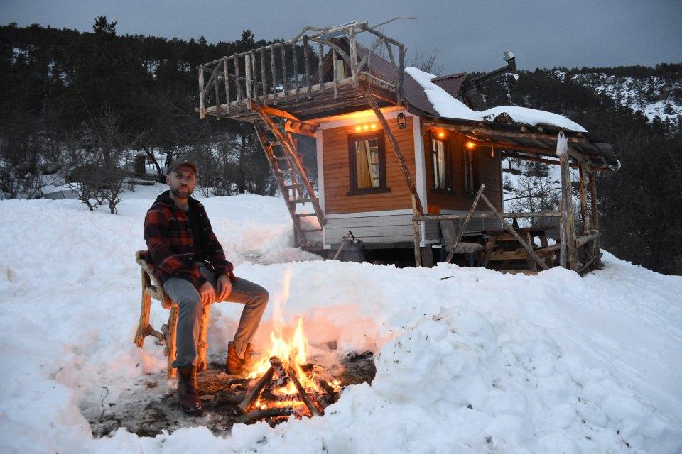 Gümüşhaneli Emre Coşkun, tutkunu olduğu doğada zaman geçirebilmek için 6 kişinin konaklayabileceği ve güneş enerjisiyle elektriğini üretebilen ahşap karavan yaptı.